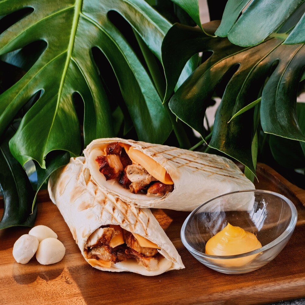Без овощей! Большая порция курочки на вертеле, тонкий лаваш, сыр моцарелла, сыр чеддер, сырный соус Б 71,6 Ж 61,0 У 66,8 1107,6к
