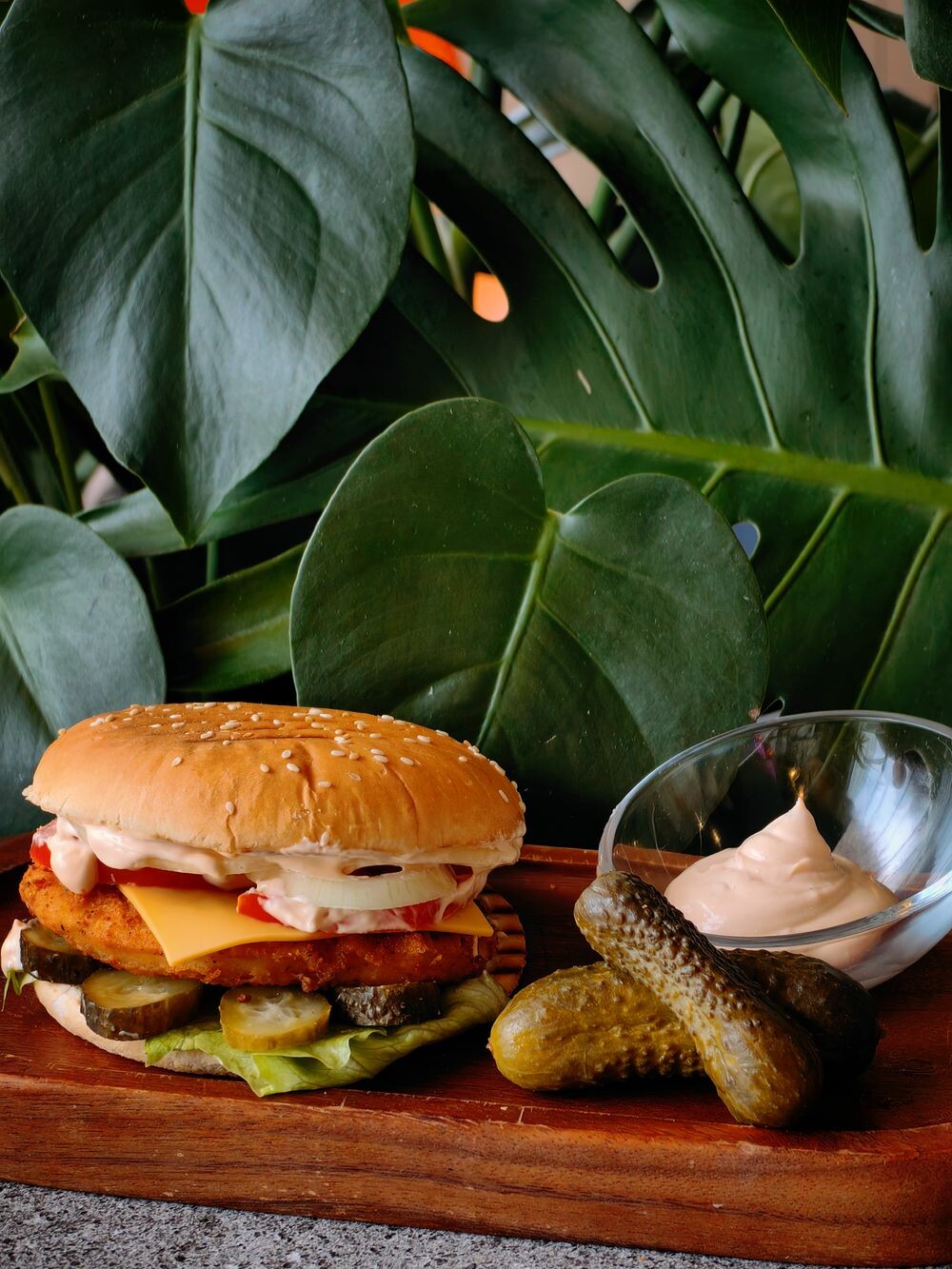 Сочная котлета из цыплёнка, покрытая хрустящими сухарями, в булочке с кунжутом. Дополняют вкус свежий салат айсберг, маринованный огурчик, свежий помидор, лук и кетчинез. Бургер Чик Норрис — гармоничное сочетание хрустящей корочки и сочных овощей.